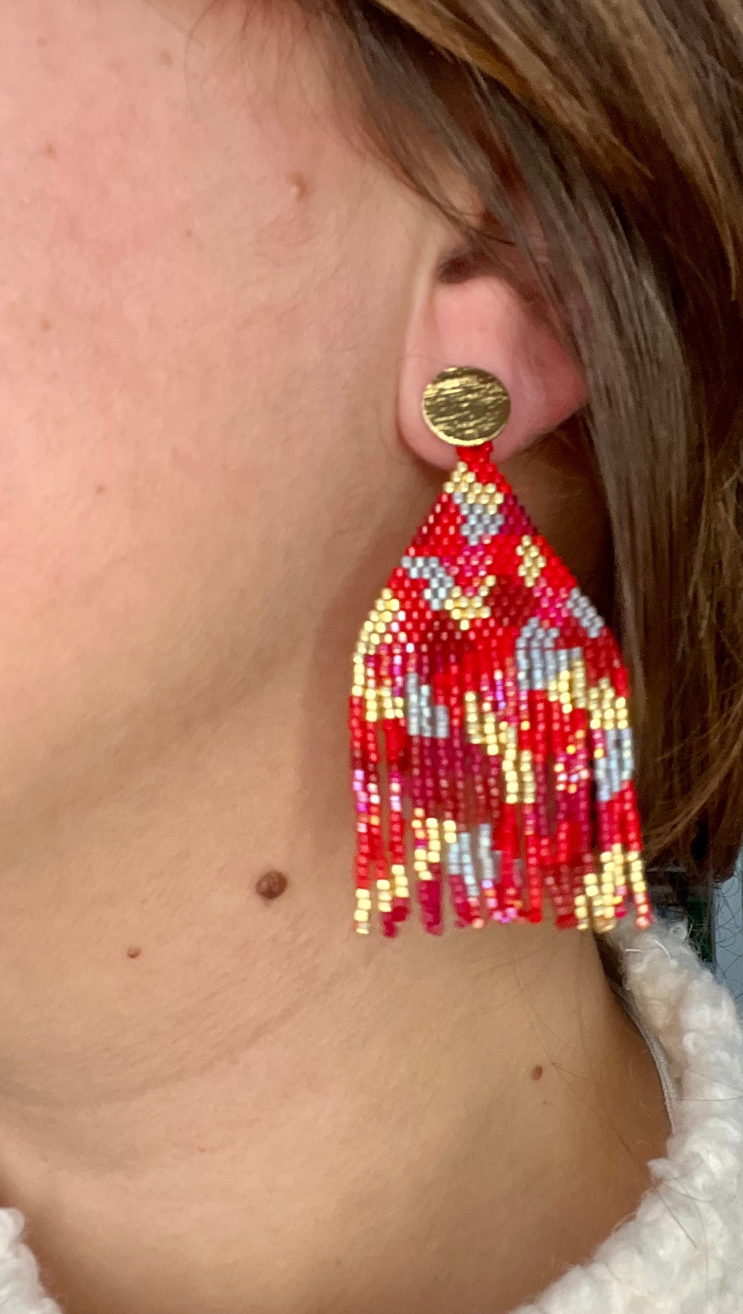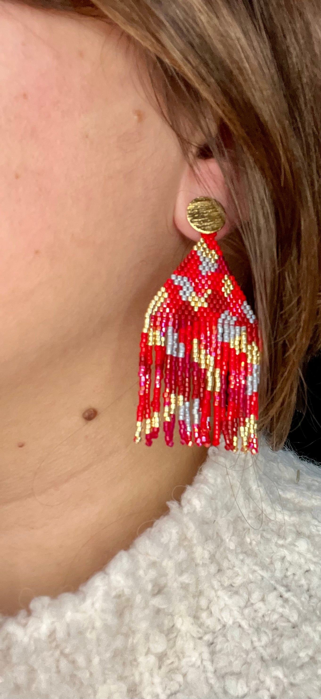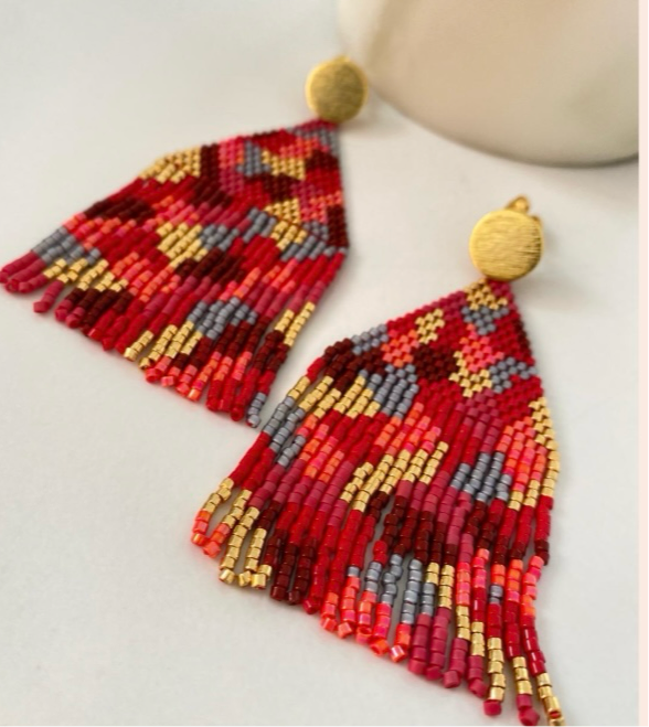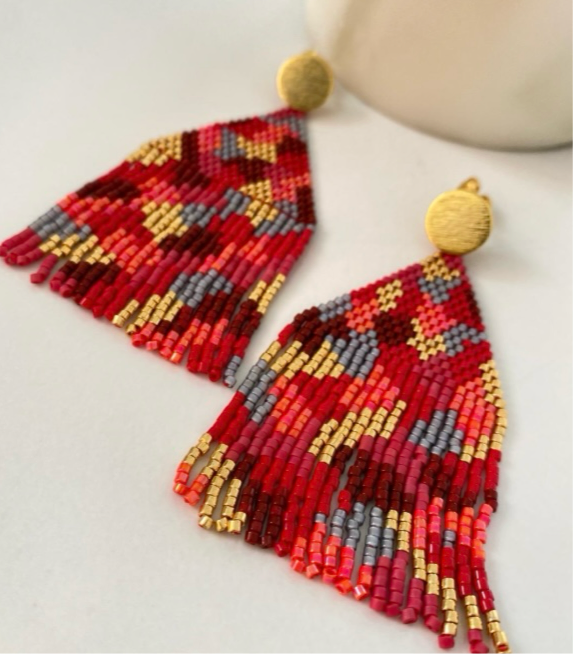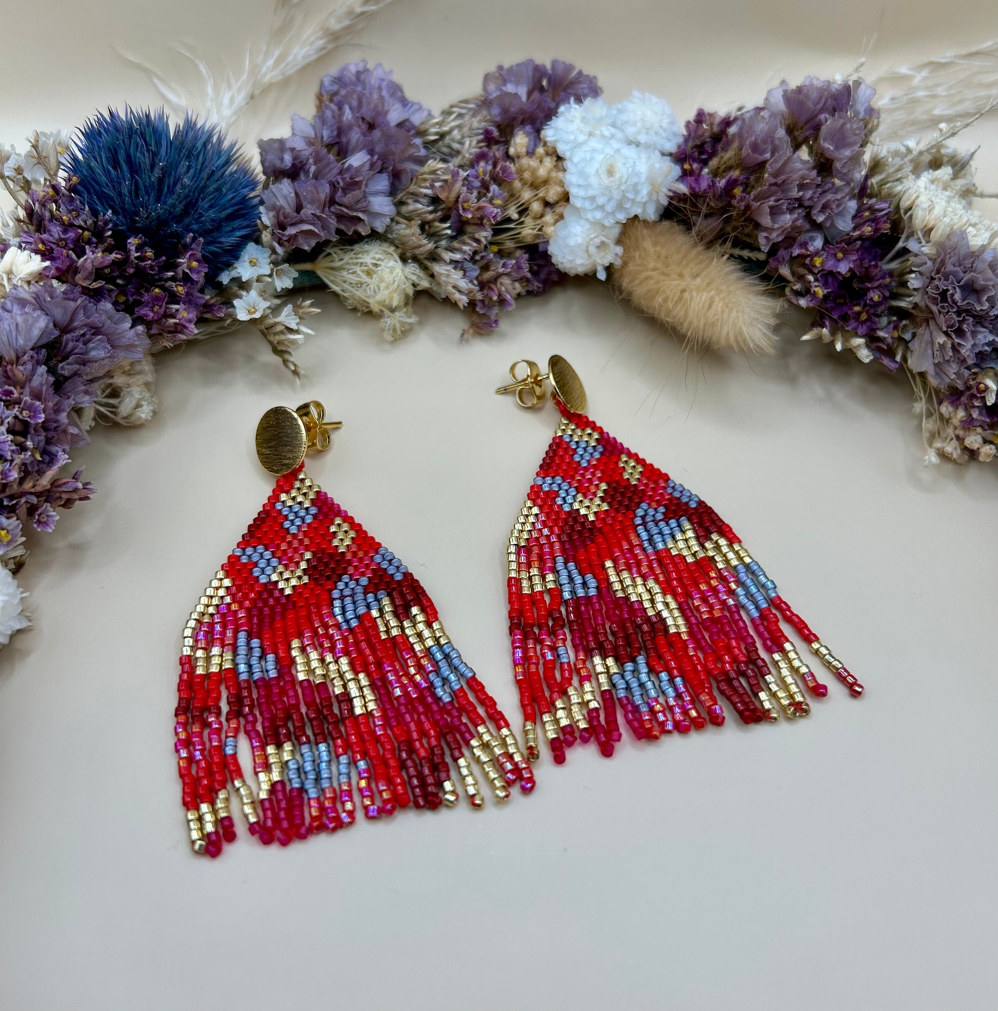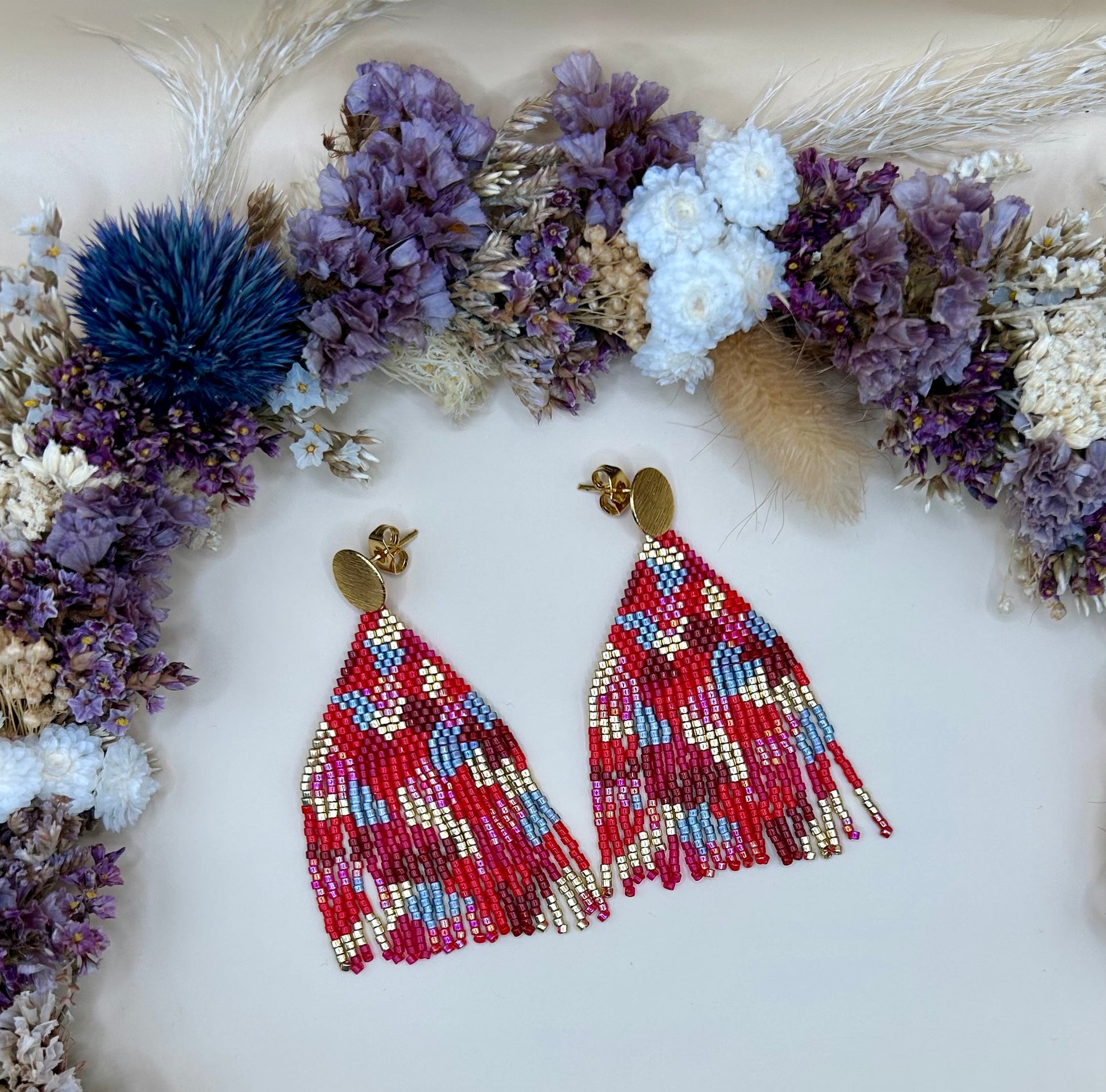 Ces boucles d’oreilles vibrantes et colorées, en acier inoxydable, sont un hommage à l’énergie et à la créativité. Leur design géométrique mêle harmonieusement des nuances rouges, dorées et bleues pour illuminer vos tenues. Légères et uniques, elles reflètent un savoir-faire artisanal exceptionnel.
