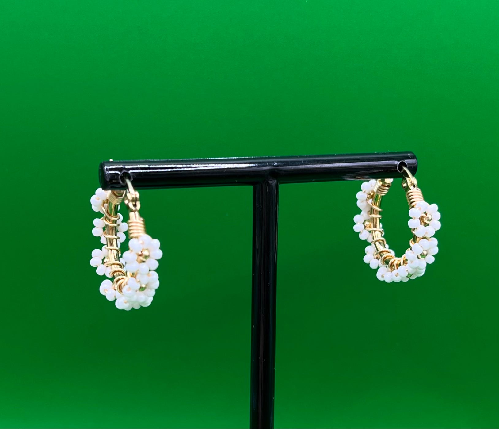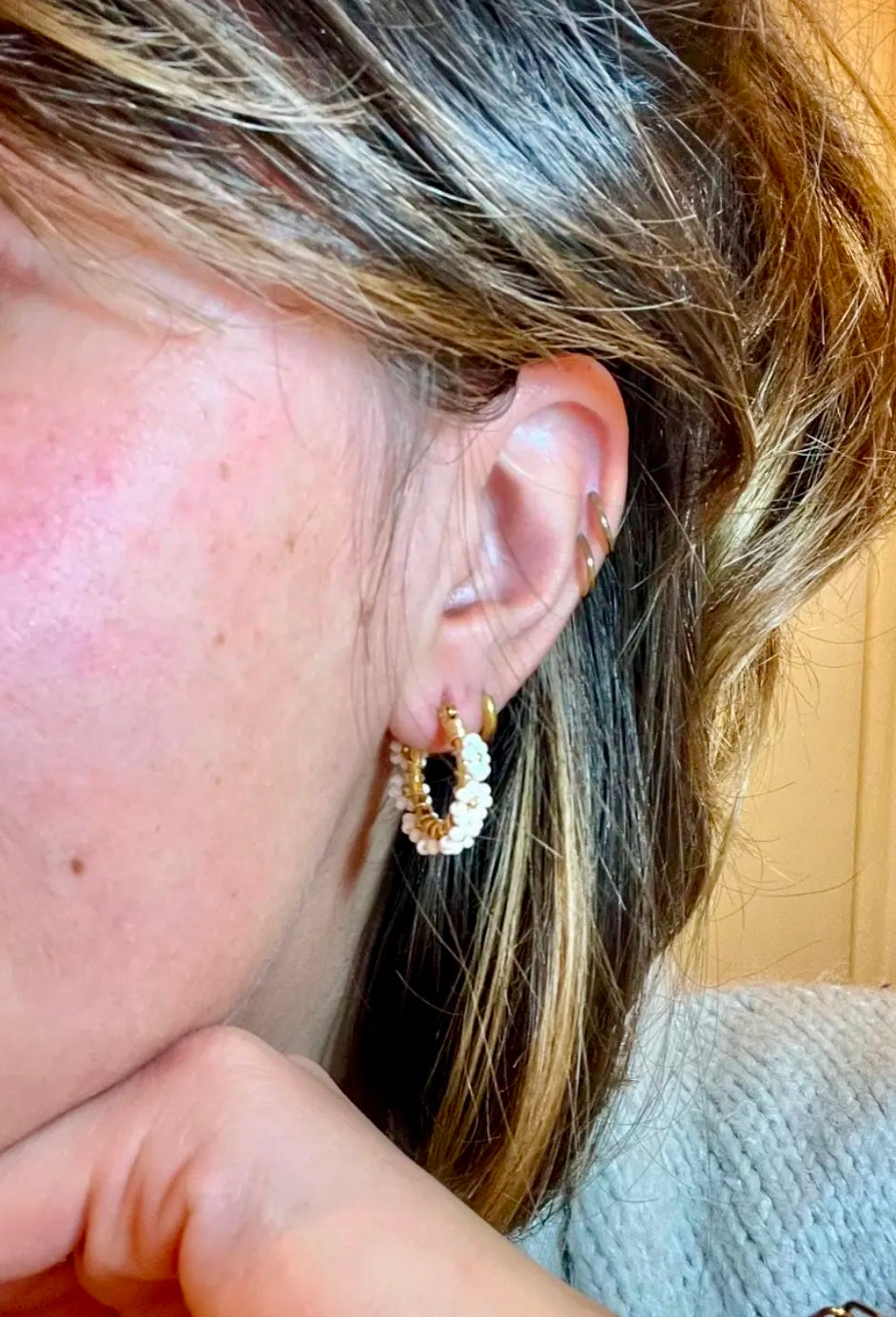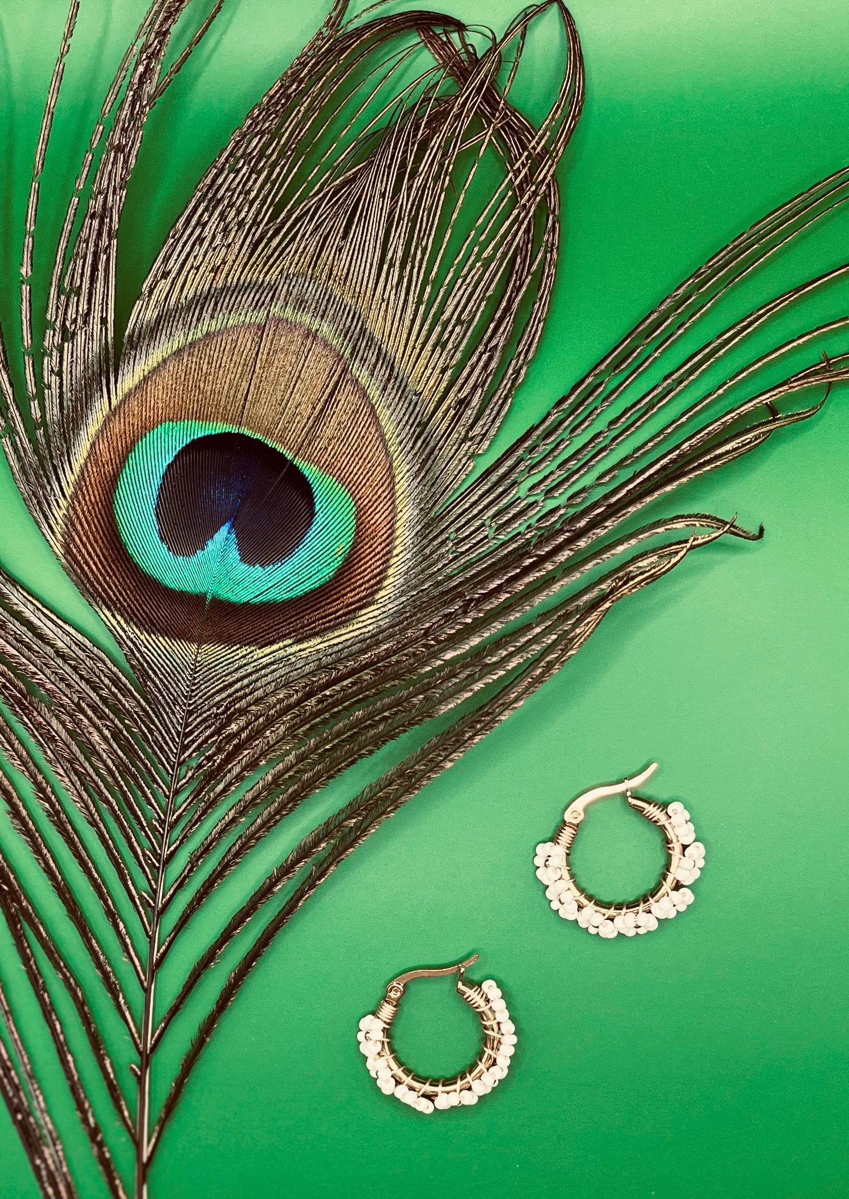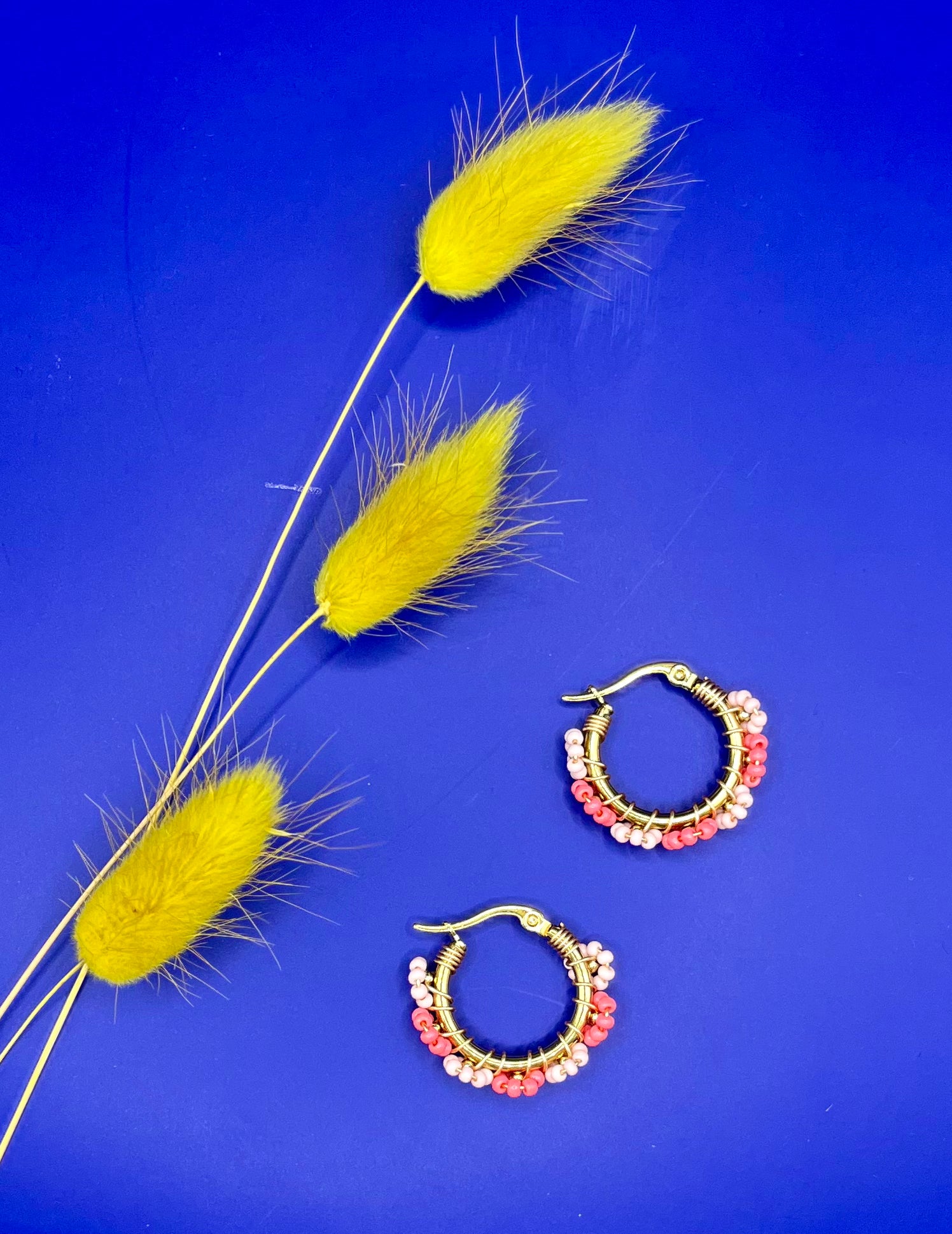 Boucles élégantes faites à la main, associant acier inoxydable et perles noires.