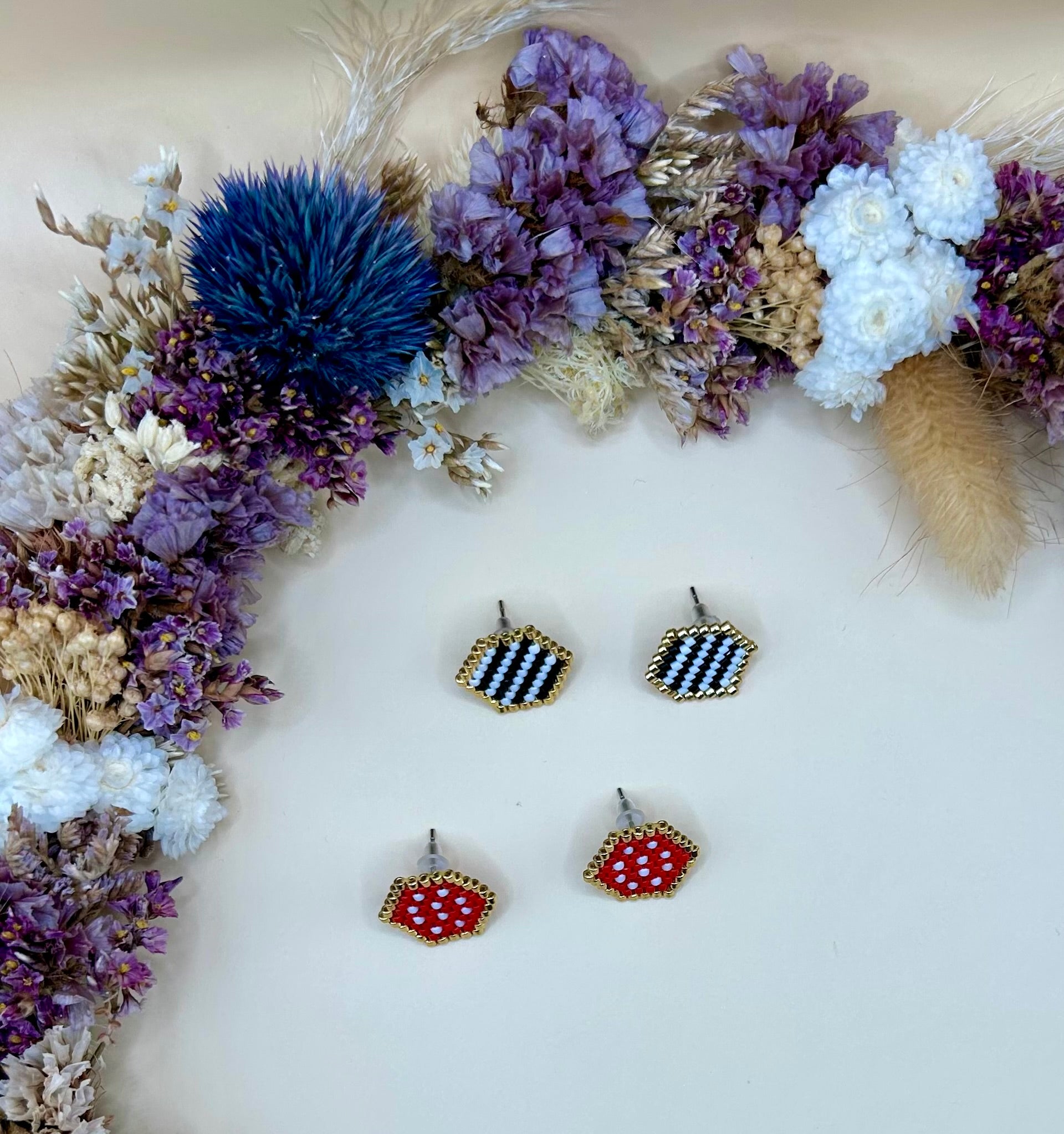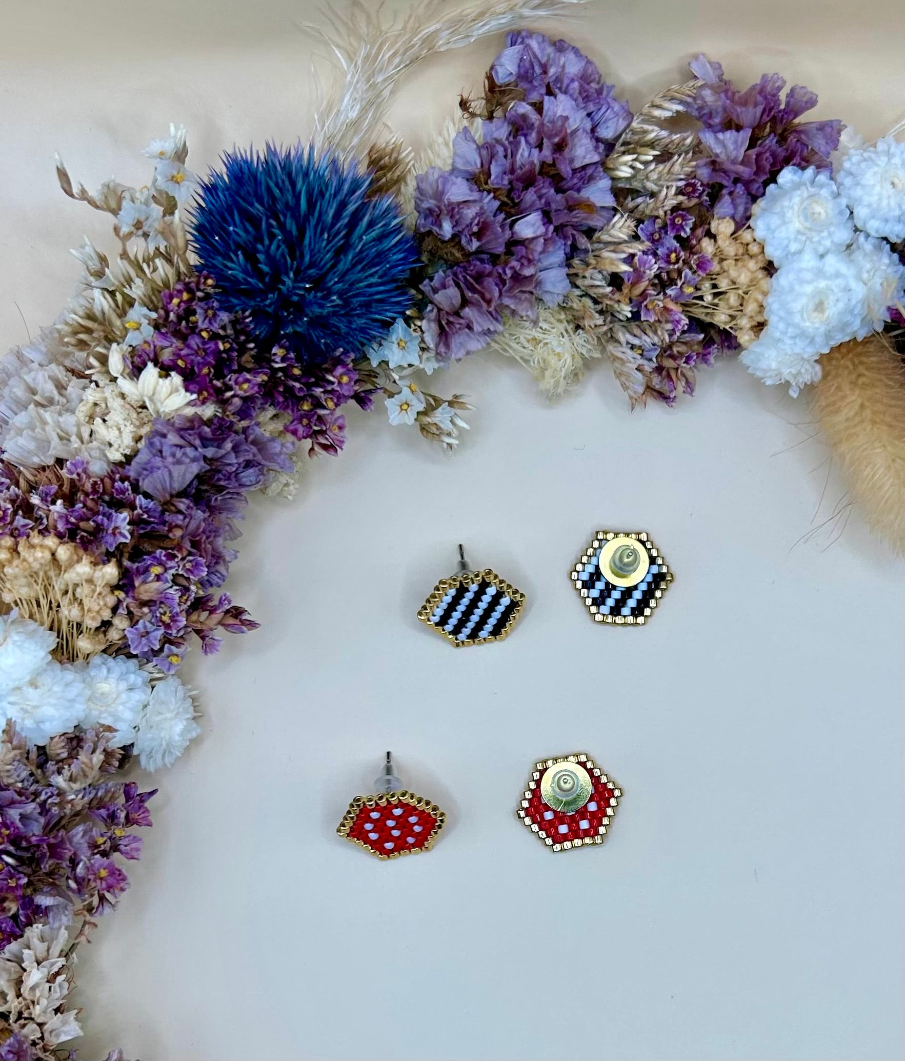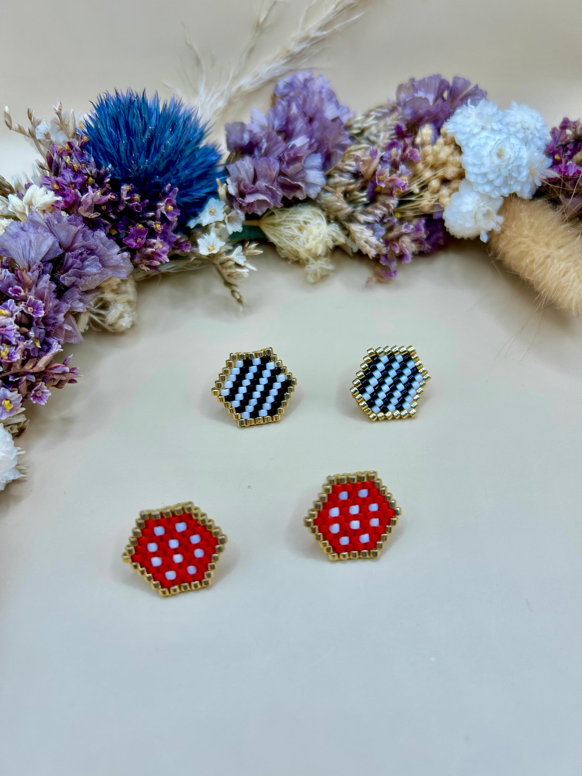 Craquez pour les boucles “Élodie”, des créations artisanales en perles Miyuki au design hexagonal unique.
