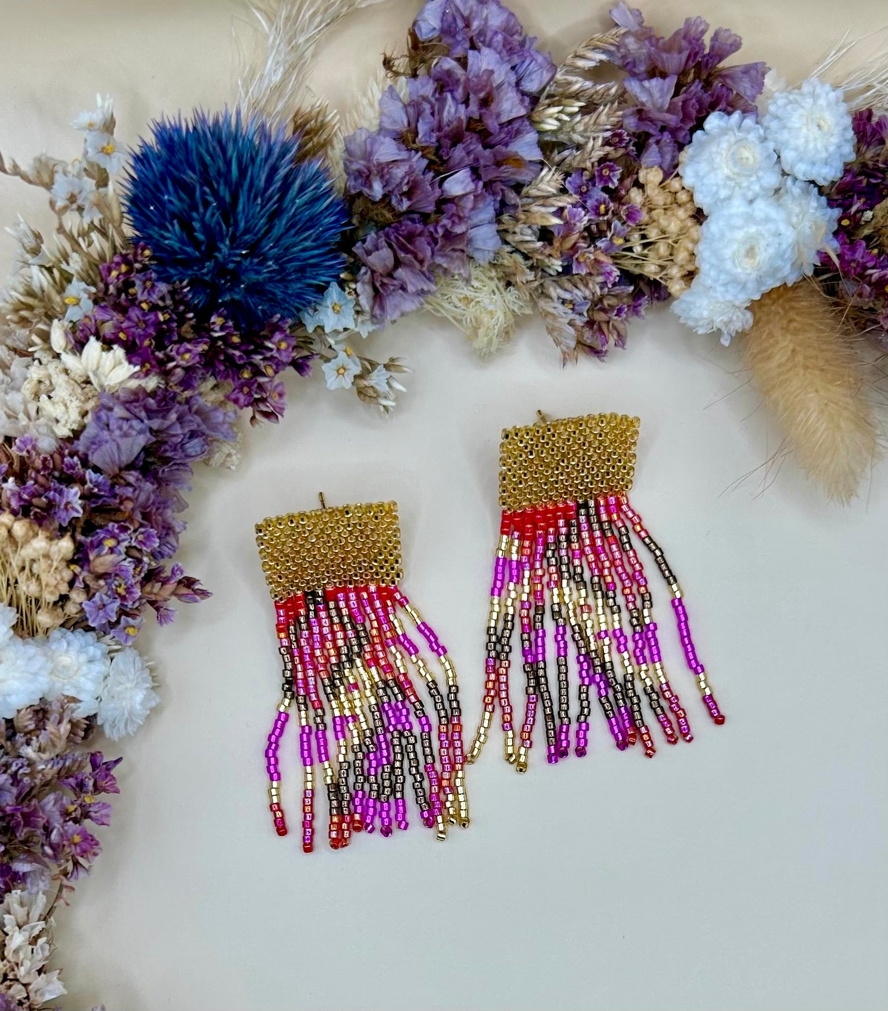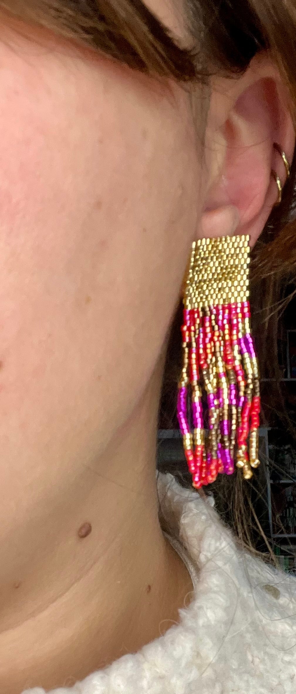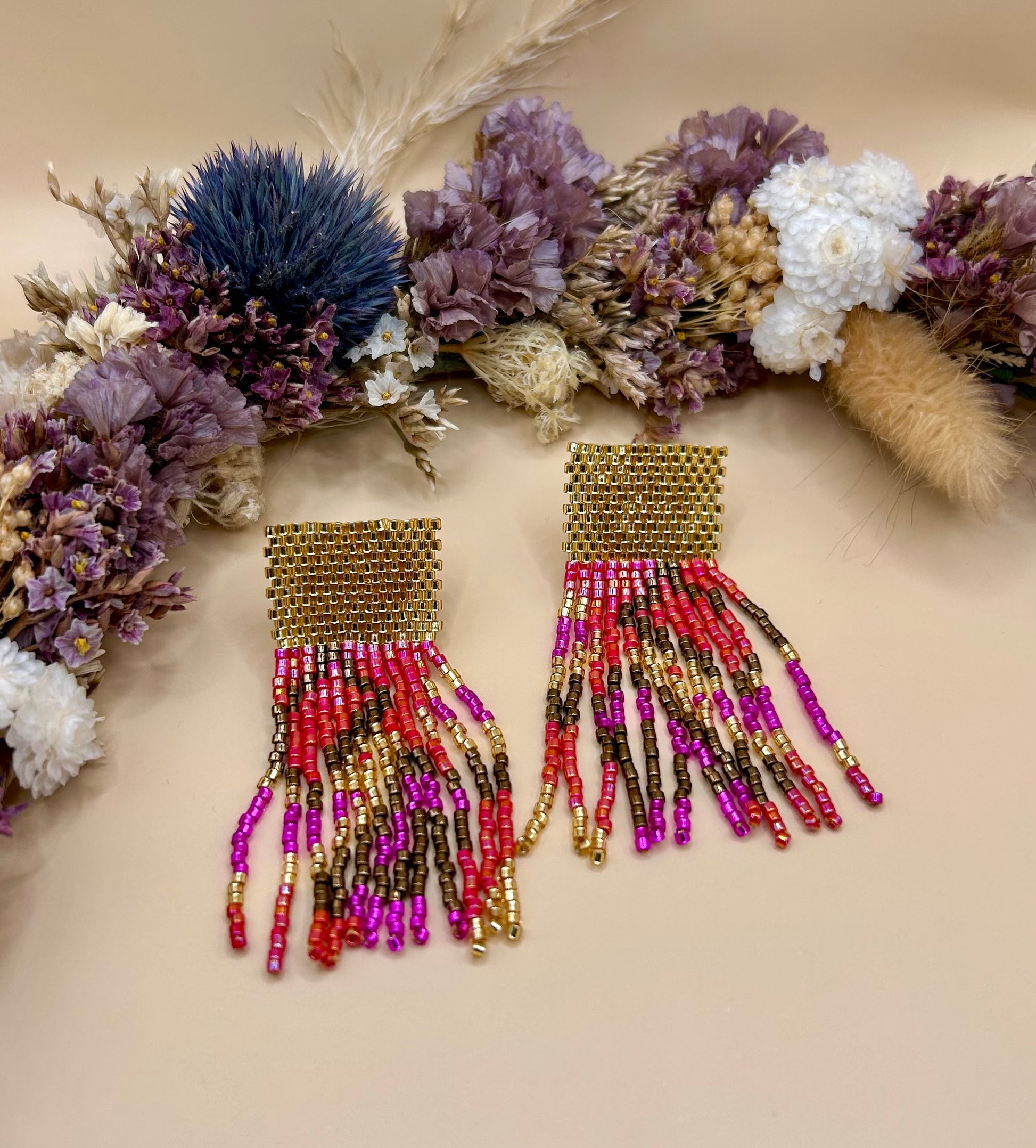 Les boucles “Louise” sont un concentré d’élégance et de dynamisme. Confectionnées à la main avec des perles Miyuki et des matériaux en acier inoxydable, elles séduisent par leur design fluide et coloré.